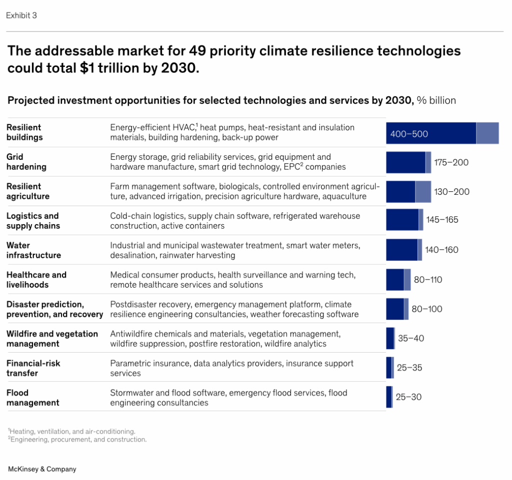 McKinsey sized the market for climate resilience technologies at up to $1 trillion by 2030.